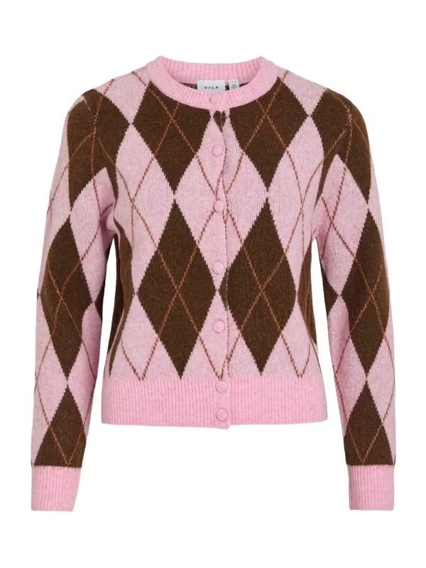 VILA Gebreid vest ‘VINORE’ bruin / lichtbruin / rosa Prijzen