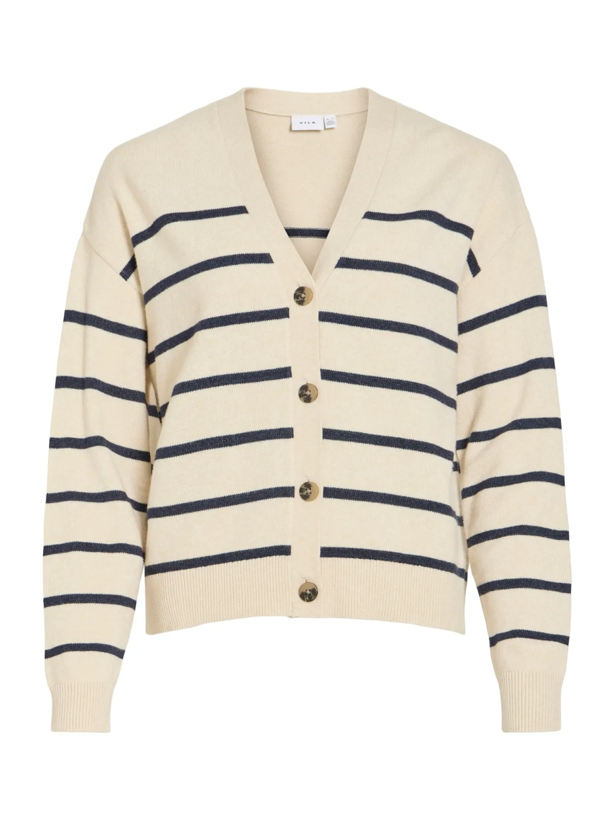 VILA Gebreid vest ‘VIRIL’ nachtblauw / offwhite Prijzen