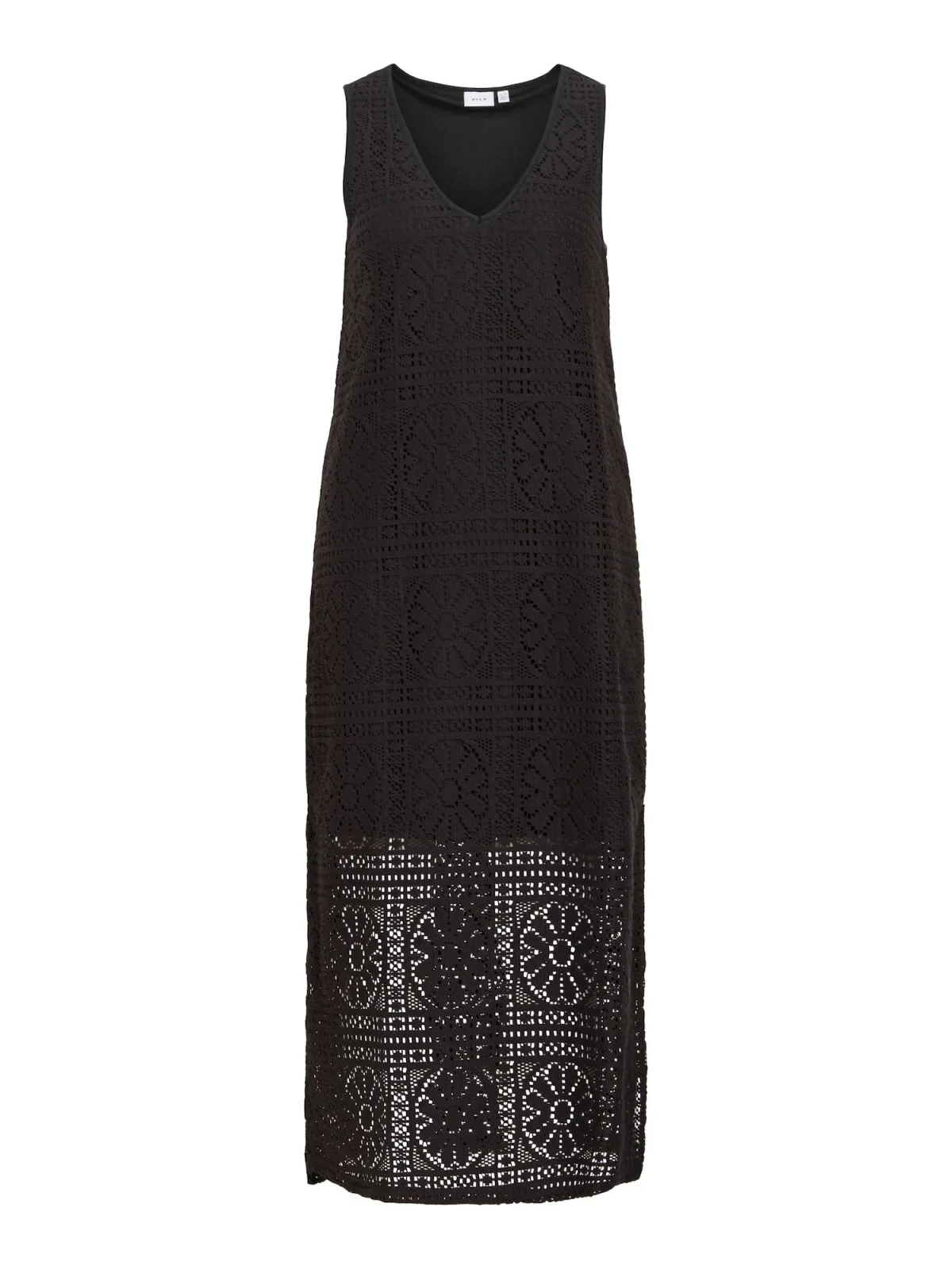 Design: Gevoerde zoom/rand, Split, Recht model; Materiaal: Knitwear; Halstype: V-hals; Soort bandjes: Brede bandjes; Details: Kant; Extra's: Transparant, Op staal naden; Lengte: 3/4 lengte; Snit: Recht; Pasvorm: Normale pasvorm; Armlengte: Mouwloos