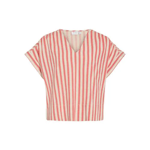 Breng zachte kleuren en een frisse streep in je garderobe met deze VILA dames top met korte mouwen. De top combineert ecru met een subtiele oranje streep, wat direct een lichte, voorjaarsachtige uitstraling geeft. De V-hals en rechte mouwen zorgen voor een ontspannen look die toch verzorgd oogt. Door de mix van viscose, katoen en linnen voelt de stof soepel en luchtig aan, ideaal voor dagelijks draagcomfort.Verfijnde details voor elke dag Kleurcombinatie in ecru/oranje met streep voor een frisse, zachte uitstraling V-hals zorgt voor een open halslijn die mooi valt bij diverse sieraden Korte, rechte mouwen voor comfortabel draaggemak in het voorjaar en de zomer Gemaakt van viscose, katoen en linnen voor een soepele, ademende stof Dit artikel valt normaal volgens het maatadvies Praktisch in onderhoud: wasbaar op 30 graden, drogen op lage temperatuur en warm strijkbaar (2 punten)Makkelijk te stylen, van werk tot weekendDeze top past goed in een dagelijkse garderobe. Combineer met een jeans en sneakers voor een casual dag of draag de top op een nette broek met loafers voor op kantoor. De lichte kleuren en de streep maken het een praktisch basisstuk dat je vaak uit de kast pakt in het lente seizoen.VILA: moderne stijlen voor elke dagVILA richt zich op eigentijdse damesmode met aandacht voor vrouwelijke pasvormen en draagbare stijlen. De collecties sluiten aan bij het dagelijks leven, zodat je kleding kiest die zowel stijlvol als praktisch is. Met deze top haal je een betrouwbaar item van een merk in huis dat al jaren een vaste waarde is in de kledingkast van veel vrouwen.Een luchtige top die je garderobe klaar maakt voor lichte, zonnige dagen.