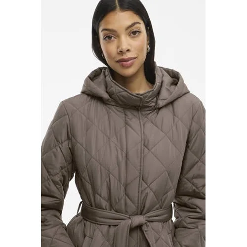 VILA gewatteerde jas quilted grijsbruin