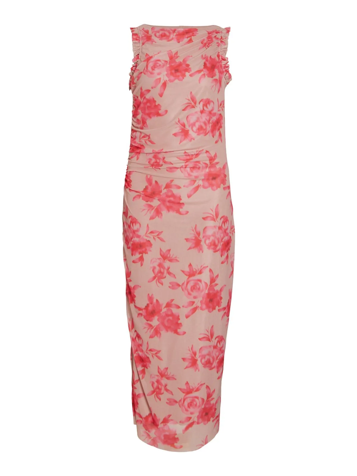 Design: Gevoerde zoom/rand, Zijdelingse inkepingen; Halstype: Ronde hals; Motief: Bloemenprint; Soort bandjes: Bandeau; Details: Ruches, Gedrapeerd; Extra's: All-over patroon; Lengte: 7/8 lengte; Snit: Getailleerd; Pasvorm: Aansluitende pasvorm; Armlengte: Mouwloos