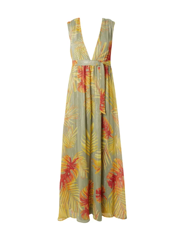 VILA Jurk ‘FLORI’ donkergeel / goud / kaki / rood