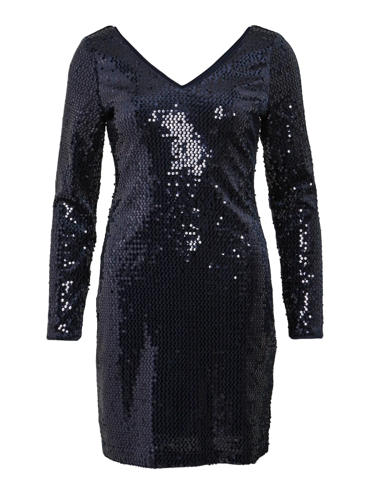 Design: Gevoerde zoom/rand, Rechte zoom, Uitgesneden rug; Halstype: V-hals; Motief: Effen; Details: Pailletten; Extra's: Met textuur, Voelt zacht aan; Lengte: Kort/mini; Pasvorm: Slanke pasvorm; Armlengte: Lange mouw