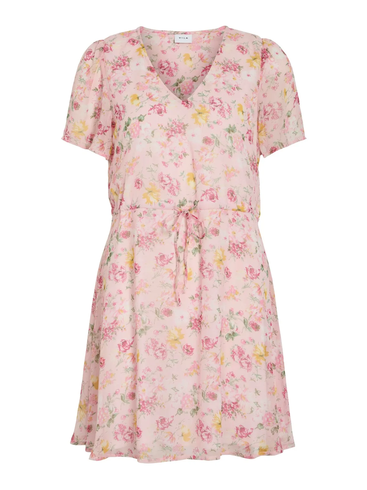 Specificaties: VILA Jurk ‘VIFalia’ geel / groen / oudroze