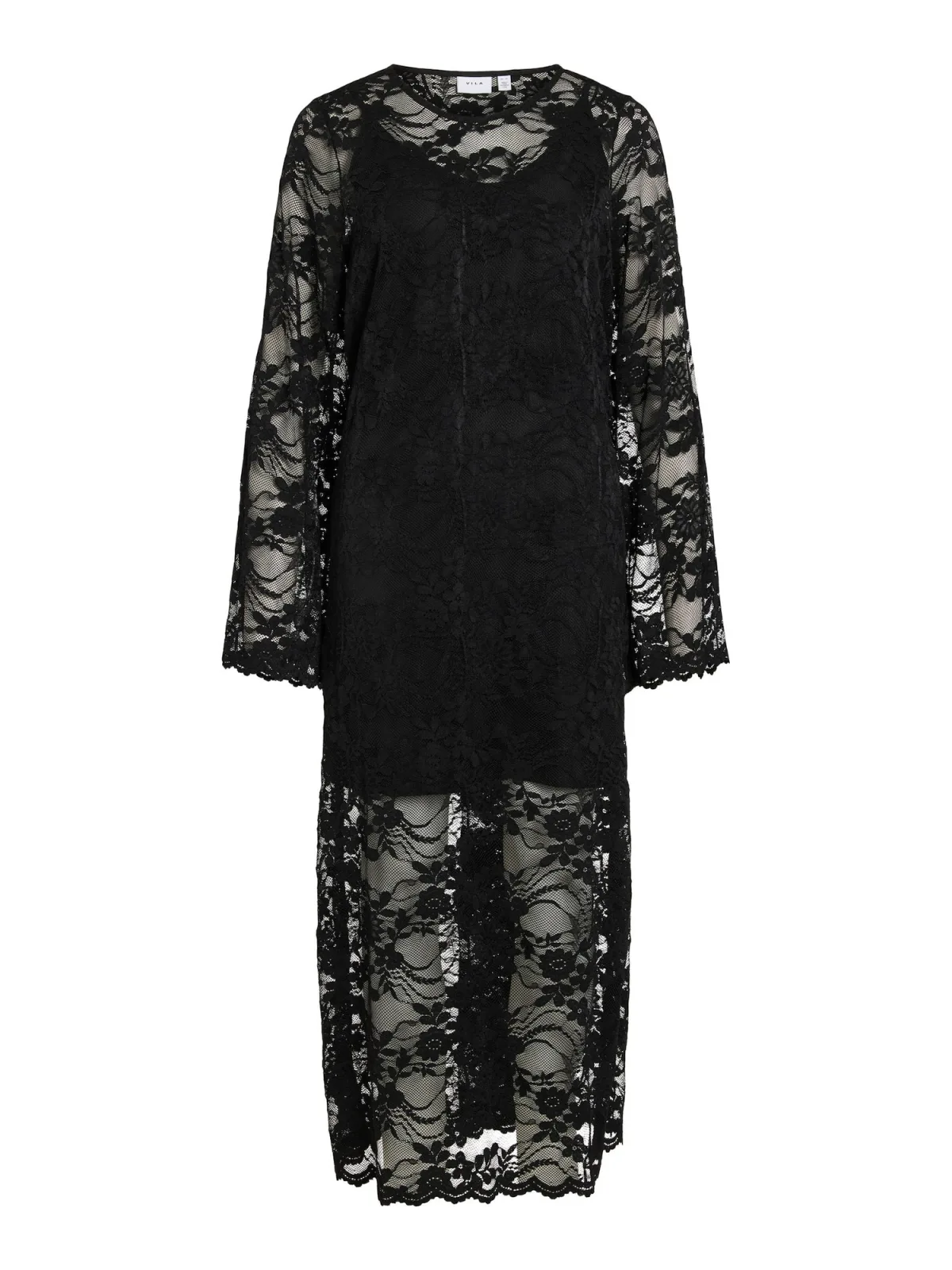 Design: Met onderjurk, Geschulpte zoom; Halstype: Ronde hals; Motief: Effen; Details: Kant; Extra's: Licht transparant; Lengte: 7/8 lengte; Snit: Recht; Pasvorm: Losse pasvorm; Armlengte: Lange mouw
