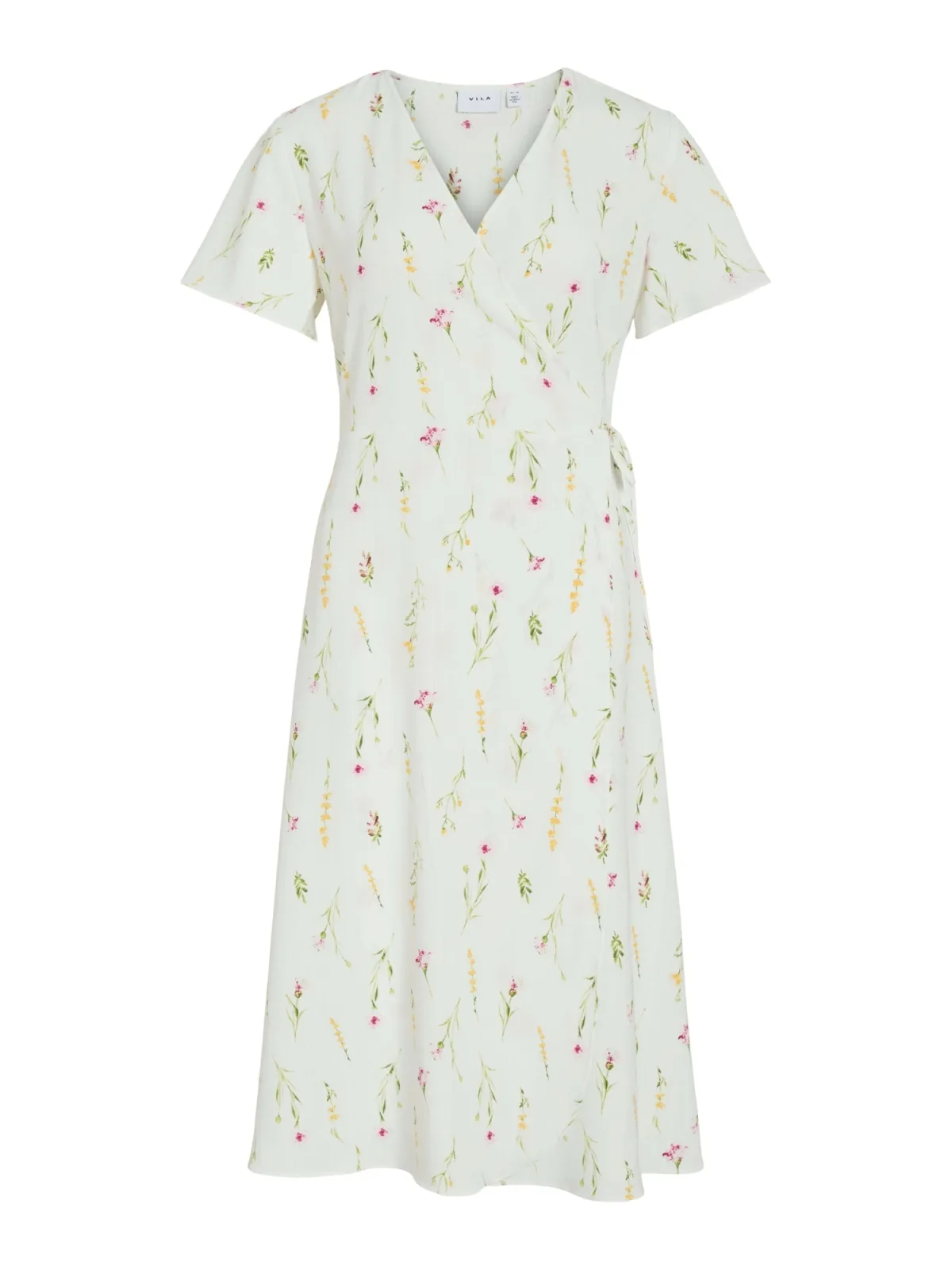 Design: Gevoerde zoom/rand, Met band/snoer, Om te knopen/binden; Materiaal: Gerecycled materiaal; Halstype: Wikkeltop; Motief: Bloemenprint; Kraag: Zonder kraag; Details: Wikkel design; Extra's: All-over patroon, Gladde stof, Met textuur; Lengte: Knielengte; Snit: Getailleerd; Pasvorm: Normale pasvorm; Armlengte: Kwartmouw