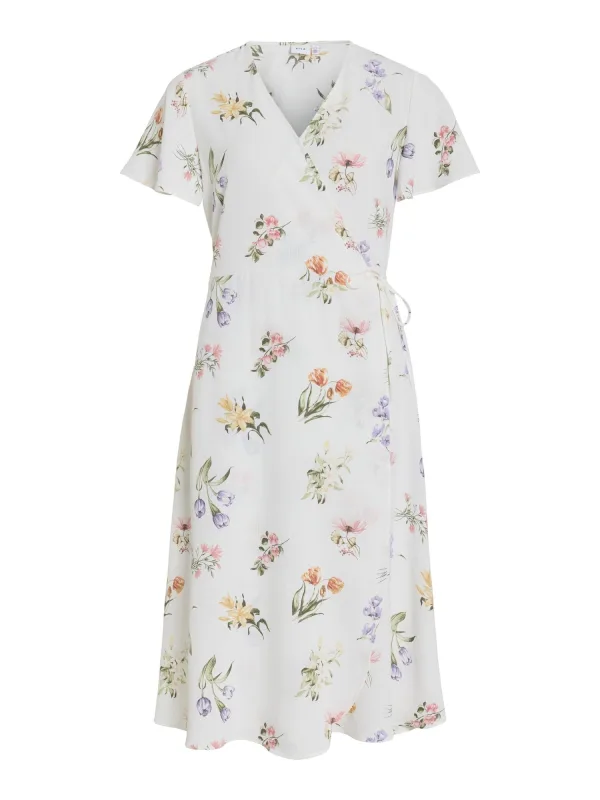Design: Diepe snit/decolleté; Materiaal: Gerecycled materiaal; Halstype: Wikkeltop; Motief: Bloemenprint; Kraag: Zonder kraag; Details: Wikkel design; Extra's: All-over patroon; Lengte: Knielengte; Snit: Getailleerd; Pasvorm: Normale pasvorm; Armlengte: Kwartmouw