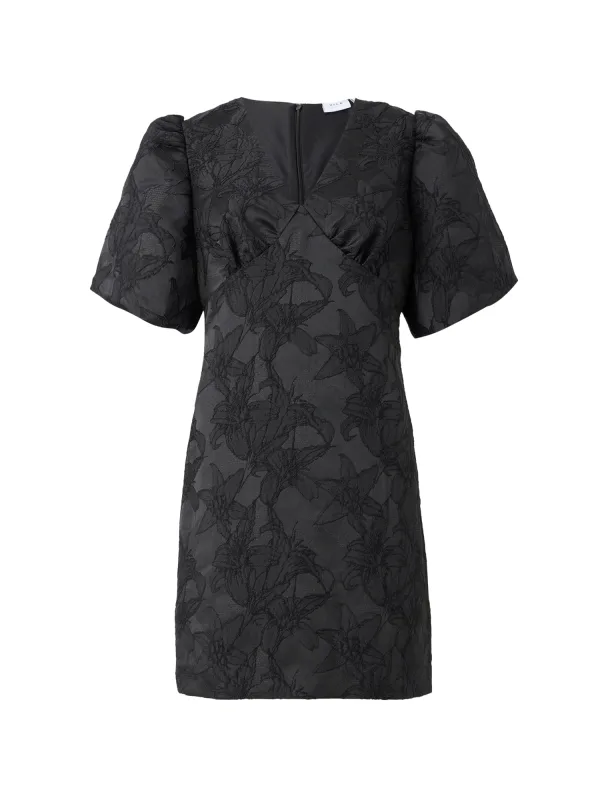 Design: Gevoerde zoom/rand, Rechte zoom, Pofmouwen; Type sluiting: Ritssluiting; Halstype: V-hals; Motief: Bloemenprint; Details: Borduursels; Extra's: Lichte stof; Lengte: Kort/mini; Snit: Recht; Pasvorm: Normale pasvorm; Armlengte: Halve mouw