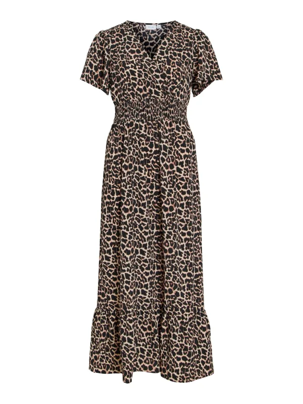 Specificaties: VILA Jurk ‘VIMathilde’ bruin / pastelroze / zwart