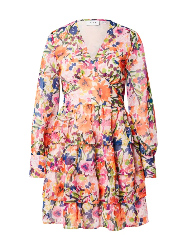 VILA Jurk 'VIMICHA' blauw / groen / kreeft / oudroze