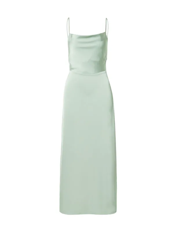 Design: Gevoerde zoom/rand, Diepe snit/decolleté, Uitgesneden rug; Type sluiting: Ritssluiting; Materiaal: Gerecycled materiaal; Halstype: Watervalhals; Motief: Effen; Soort bandjes: Spaghettibandjes; Details: Backless; Extra’s: Verstelbare bandjes, Op staal naden, Gladde stof; Lengte: 7/8 lengte; Snit: Recht; Pasvorm: Normale pasvorm; Armlengte: Mouwloos