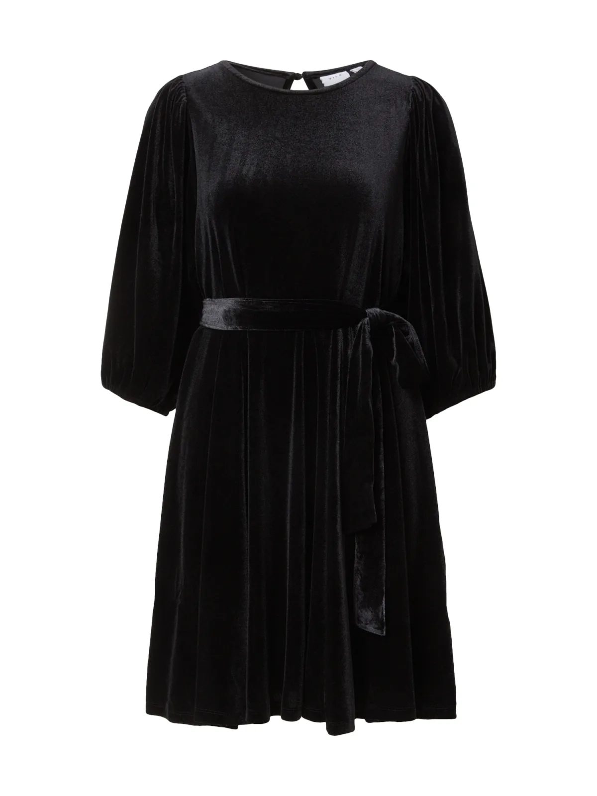 Design: Gevoerde zoom/rand, Keyholesluiting, Pofmouwen, Tailleriem; Type sluiting: Knoopsluiting; Materiaal: Fluweel/Nicky Velours; Halstype: Ronde hals; Motief: Effen; Details: Cut-outs, Gedrapeerd; Extra's: Op staal naden, Voelt zacht aan; Lengte: Knielengte; Snit: Getailleerd; Pasvorm: Normale pasvorm; Armlengte: Driekwart mouw
