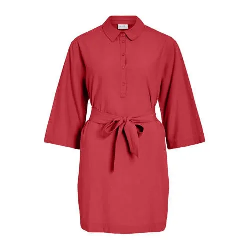 Voeg eenvoudig kleur toe aan je garderobe met deze koraalrode korte jurk van VILA. De frisse tint koraalrood past goed bij het voorjaar en geeft meteen een levendige, maar rustige uitstraling. De jurk valt kort, heeft een klassieke kraag en een knoopsluiting aan de voorkant, zodat je zelf bepaalt hoe open je de hals draagt. De bijpassende ceintuur in de taille zorgt voor een vrouwelijk silhouet en maakt het geheel netjes afgewerkt.Vrouwelijke details voor elke dag Korte jurk uit de Daily collectie, ideaal voor alledaags gebruik Koraalrode kleur voor een frisse uitstraling Klassieke kraag en doorknoopsluiting voor een nette uitstraling Driekwart mouwen met rechte mouwinzet voor een rustige vorm Ceintuur in de taille voor een mooi geaccentueerde pasvorm Effen ontwerp zonder zakken voor een strak en rustig beeld Geschikt voor standaardmaten damesGemakkelijk te stylen in het voorjaarDeze korte jurk is een praktische basis voor je lente-outfits. Combineer met sneakers voor een casual dag, of kies voor laarsjes en subtiele sieraden als je net iets gekleder wilt gaan. De effen kleur maakt het eenvoudig om er een vest, blazer of jas overheen te dragen.VILA: toegankelijke mode met een moderne twistVILA staat bekend om vrouwelijke items met een zachte, moderne uitstraling. De collecties zijn ontworpen om goed te combineren, zodat je met een paar key pieces meerdere looks maakt. Met deze jurk kies je voor een item dat past bij een druk dagelijks leven en toch verzorgd oogt.Een praktische jurk die je garderobe het hele seizoen door kleur en gemak geeft.