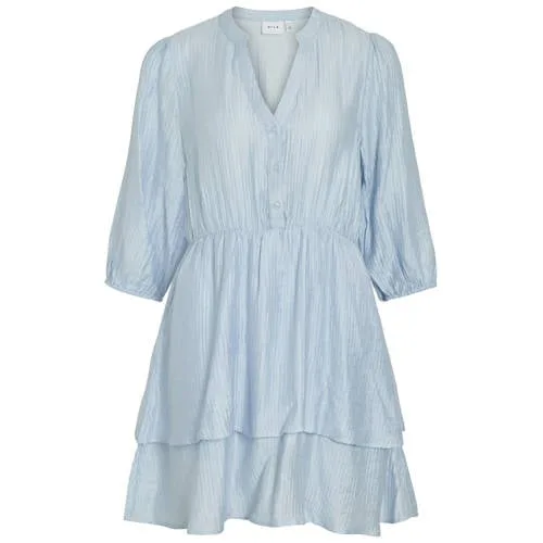 Voor een frisse, vrouwelijke look in je dagelijkse garderobe is deze lichtblauwe korte dames jurk van VILA een praktische toevoeging. De jurk valt soepel om het lichaam, heeft een V-hals en volantdetails die voor een lichte beweging zorgen bij elke stap. De lichtblauwe kleur sluit goed aan bij het lenteseizoen en geeft direct een zachte, open uitstraling.Verfijnde details voor elke dag Korte jurk met driekwart ballonmouwen voor een moderne, luchtige look V-hals en knoopsluiting aan de voorkant voor een vrouwelijke uitstraling Zachte stofmix met 47% viscose, 36% lyocell en 17% polyamide die soepel valt Effen lichtblauwe kleur, te combineren met sandalen, sneakers of laarsjes Valt normaal volgens het maatadvies, passend bij je gebruikelijke maat Geschikt voor dagelijks gebruik en gelegenheden zoals een tuinfeest Onderhoudsvriendelijk: wasbaar op 30 graden en lauw strijkbaar (1 punt) Niet drogen in de droogtrommel, zo blijft de kwaliteit van de stof behoudenVan lunchdate tot tuinfeestDeze jurk sluit aan bij uiteenlopende momenten in je week. In combinatie met lichte sneakers en een denim jack ontstaat een ontspannen outfit voor overdag, terwijl sandalen en subtiele sieraden de jurk geschikt maken voor een tuinfeest of etentje. De ballonmouwen en de textuur in de stof zorgen voor extra detail, terwijl de totale look rustig blijft.VILA: eigentijdse stijl voor elke dagVILA ontwerpt kleding met een moderne, toegankelijke uitstraling en aandacht voor vrouwelijke lijnen. De collecties combineren zachte kleuren, doordachte details en draagbare pasvormen, zodat het samenstellen van een complete outfit eenvoudig wordt. Deze jurk is een stijlvol en betrouwbaar onderdeel van je garderobe voor de warmere seizoenen.Een lichte jurk met soepele pasvorm, ideaal voor zonnige dagen.