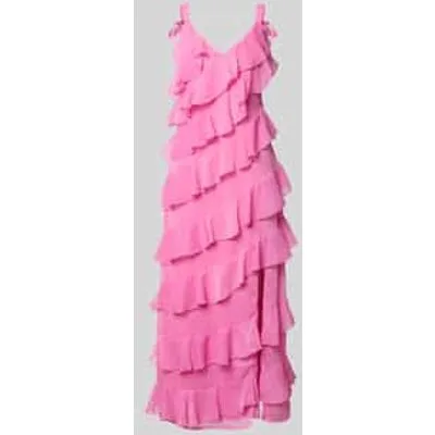 Dames Midi-jurk van Vila;A-lijn;Volants;Model 'LUNA';Bandjes met vetersluiting;ruglengte bij maat 36: 115 cm;borstwijdte bij maat 36: 43 cm