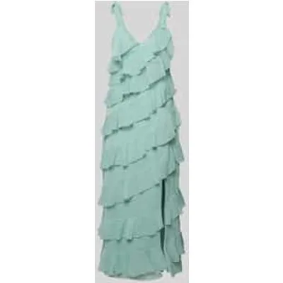Dames Midi-jurk van Vila;A-lijn;Volants;Model 'LUNA';Bandjes met vetersluiting;ruglengte bij maat 36: 115 cm;borstwijdte bij maat 36: 43 cm