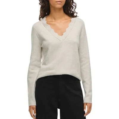 Design: Geribbelde kraag, Geribd ceintuurtje; Materiaal: Knitwear; Halstype: V-hals; Motief: Mélange; Details: Mesh; Extra's: Met textuur, Milieuvriendelijk geproduceerd; Pasvorm: Normale pasvorm; Armlengte: Lange mouw; Lengte: Normale lengte