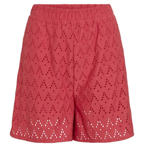VILA regular high waist casual short koraalrood broderie Prijzen