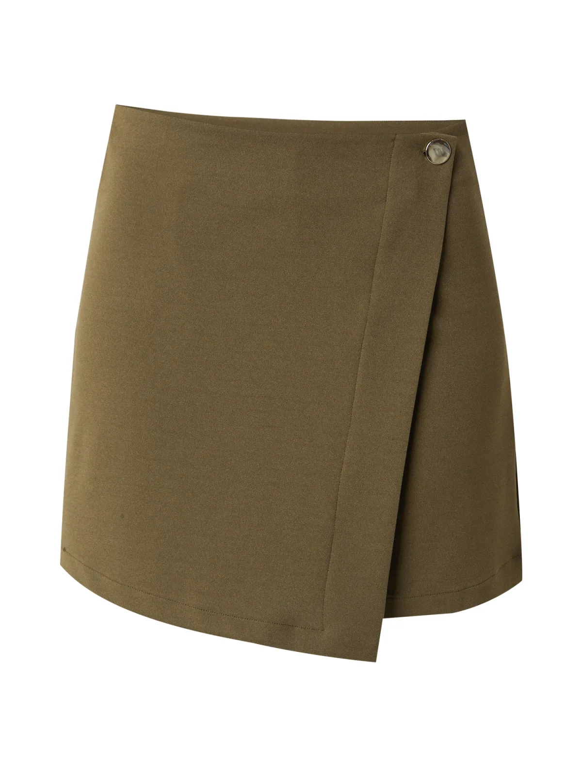Design: Gevoerde zoom/rand, Tailleband; Type sluiting: Knoopsluiting; Materiaal: Gerecycled materiaal; Motief: Effen; Details: Wikkel design; Extra's: Op staal naden, Milieuvriendelijk geproduceerd; Lengte: Kort/mini; Pasvorm: Normale pasvorm