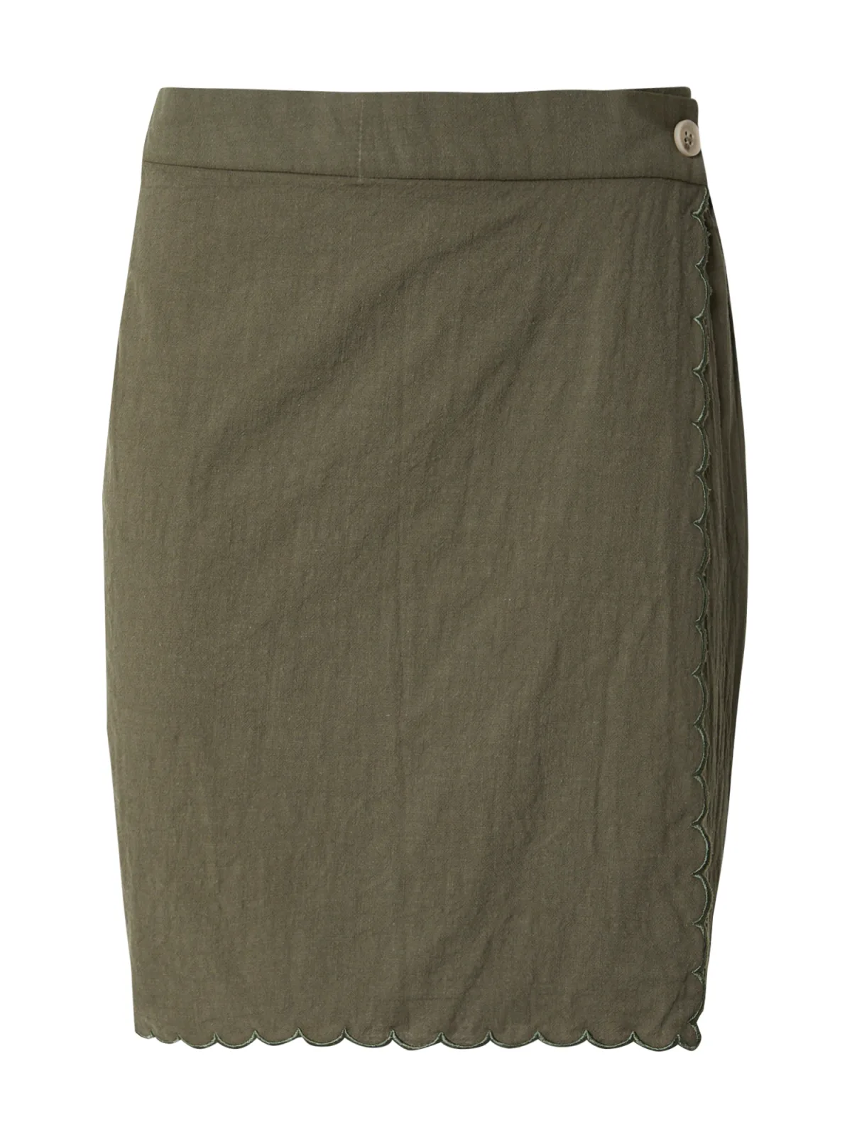Design: Ritszakken aan de zijkant, Geschulpte zoom; Type sluiting: Knoopsluiting; Materiaal: Katoen; Motief: Effen; Rokvorm: Wickelrock; Details: Borduursels, Wikkel design; Extra's: Op staal naden, Voelt zacht aan; Lengte: Kort/mini; Pasvorm: Normale pasvorm