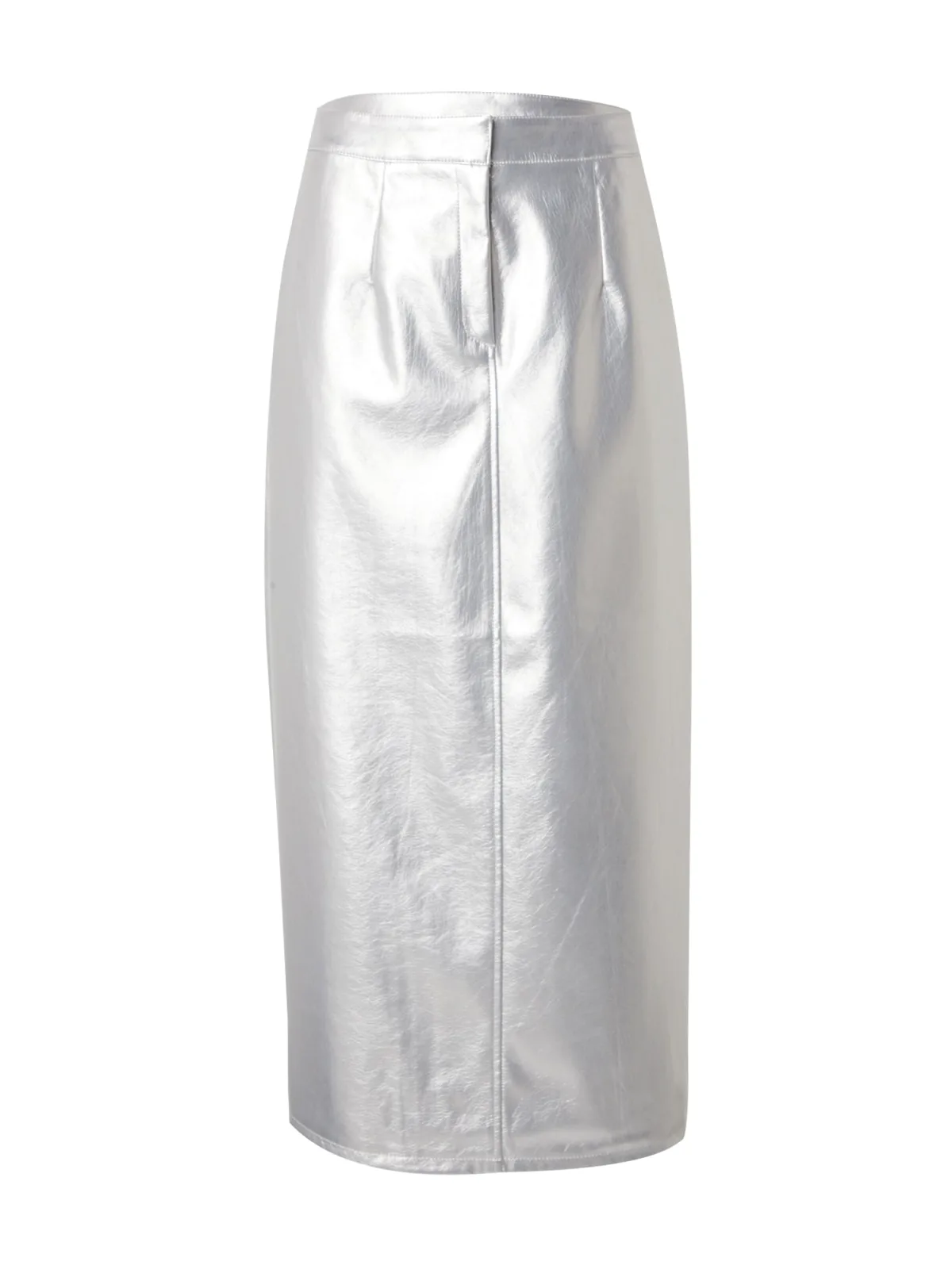 Design: Gevoerde zoom/rand, Rechte zoom, Verborgen rits, Haaksluiting; Type sluiting: Ritssluiting; Materiaal: Imitatieleder; Motief: Effen; Extra's: Op staal naden, Metallic look; Lengte: 3/4 lengte; Pasvorm: Normale pasvorm