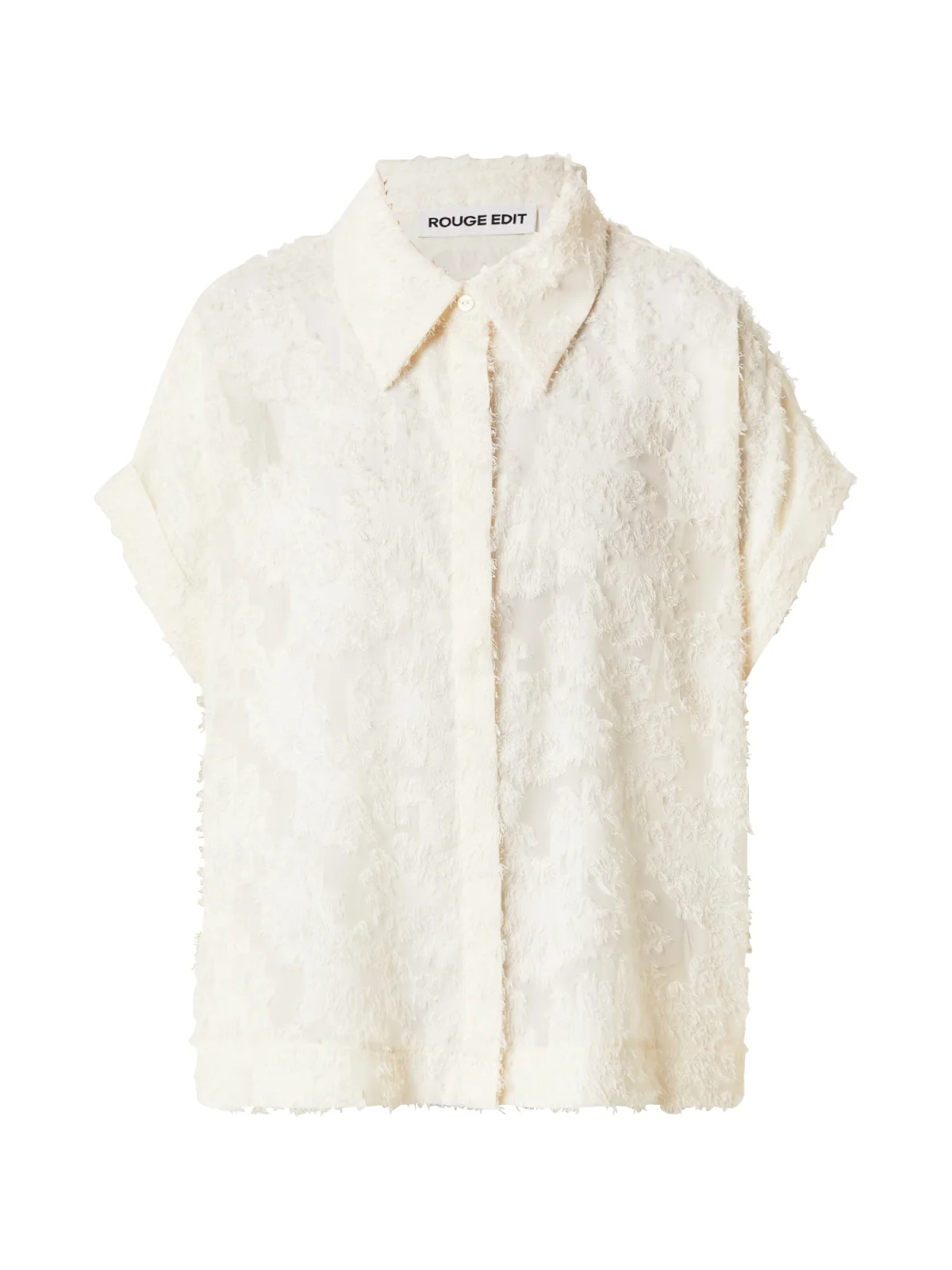 Blouse type: Klassieke blouse; Design: Mouw revers, Verborgen knop placket; Type sluiting: Knoopsluiting; Kraag: Kentkraag; Details: Franjes; Extra's: Licht transparant, Applicaties, Gladde stof; Pasvorm: Wijde pasvorm; Armlengte: Kwartmouw; Lengte: Normale lengte