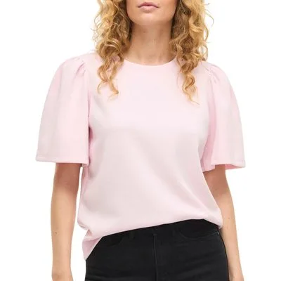 Specificaties: * Pasvorm: regular fit; ronde hals * Kleur: roze * Materiaal: 50% viscose – 44% gerecycled polyester – 6% elastaan