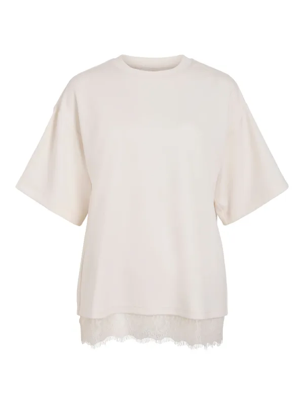 Design: Geribbelde kraag, Overcut schouder; Materiaal: Jersey; Halstype: Ronde hals; Motief: Effen; Details: Kant; Extra's: Op staal naden, Voelt zacht aan; Pasvorm: Losse pasvorm; Armlengte: Halve mouw; Lengte: Normale lengte