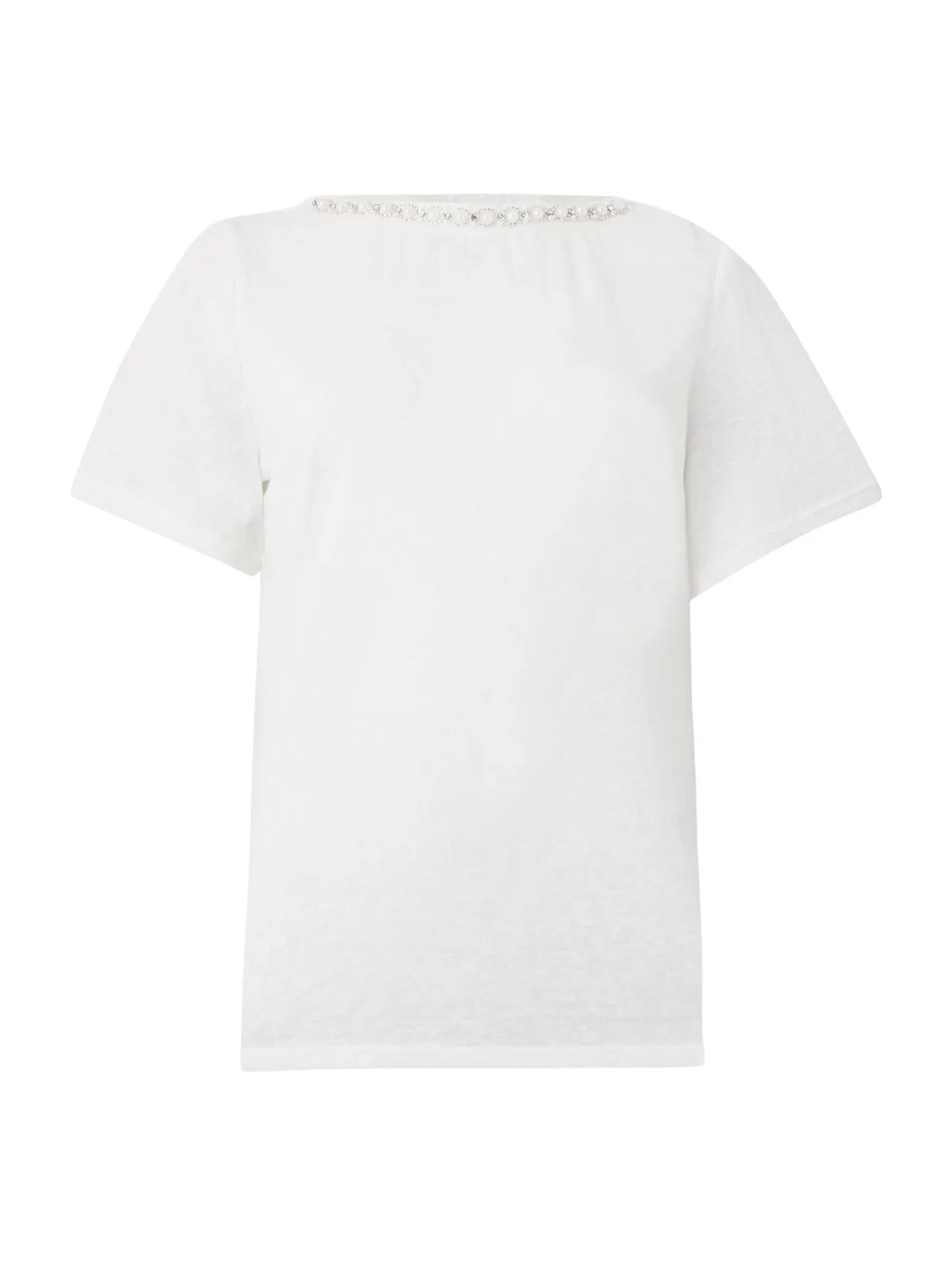 Design: Gevoerde zoom/rand, Rechte zoom; Materiaal: Jersey; Halstype: Ronde hals; Motief: Mélange; Details: Sierstenen, Parels; Extra's: Applicaties, Voelt zacht aan; Pasvorm: Normale pasvorm; Armlengte: Kwartmouw; Lengte: Normale lengte