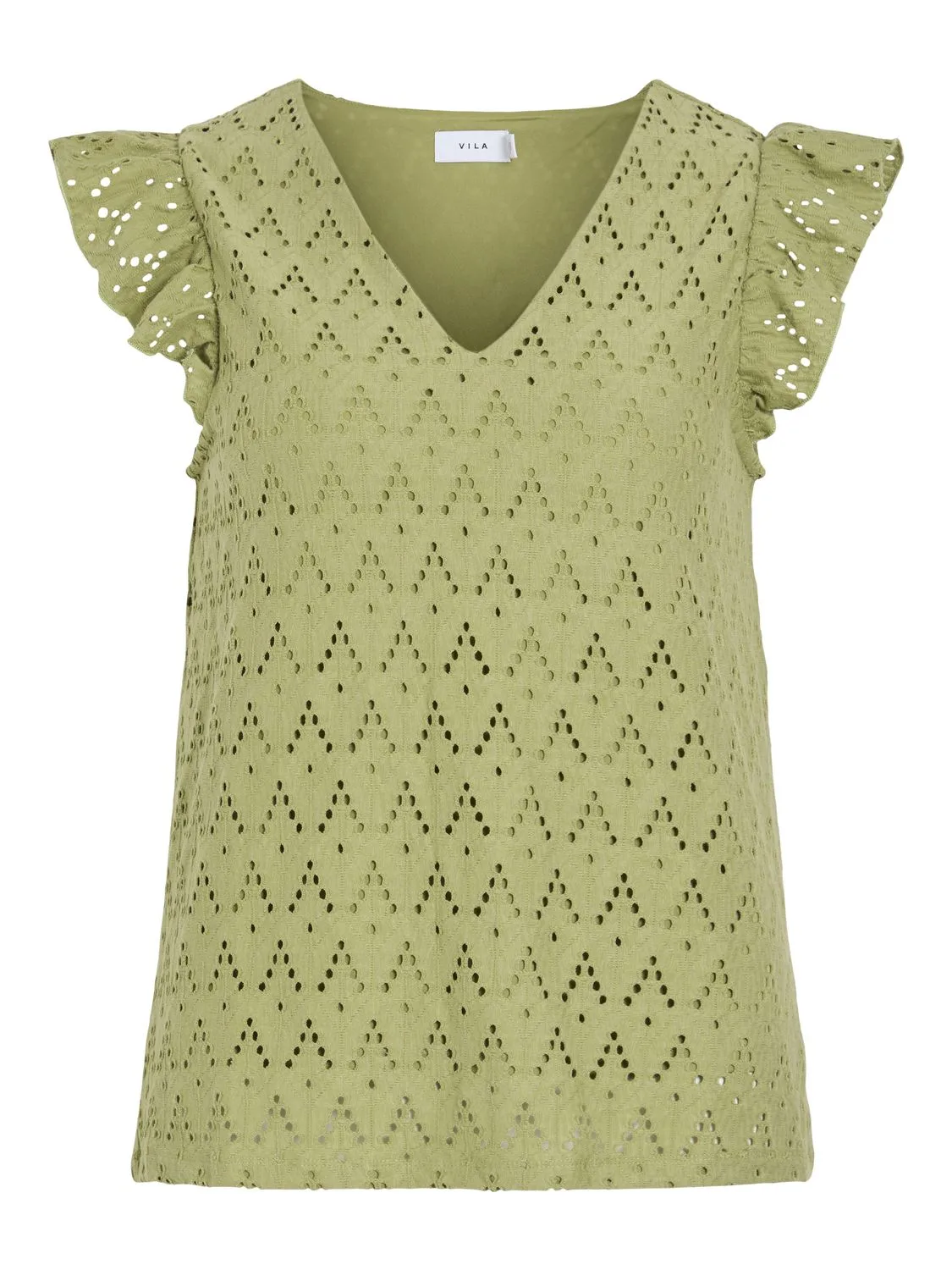 De Top Amalina van Vila is een dames top korte mouw, perfect voor de zomer. Gemaakt van katoen met een V-hals, biedt deze top een vrouwelijke stijl en regular pasvorm. Het gaatjespatroon en de mouwloze afwerking maken het een modieuze keuze.