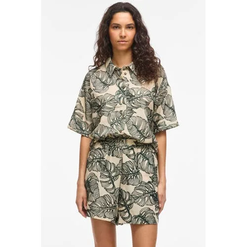 Breng eenvoudig wat zomerse print in je garderobe met deze VILA dames top met bladprint. De beige top met donkergroene bladeren heeft een rustige all-over print die je makkelijk combineert met je favoriete jeans, pantalon of rok. De halflange mouwen en klassieke kraag geven een verzorgde look, terwijl de soepele stof prettig aanvoelt op de huid.Verfijnde details voor elke dag Beige top met donkergroene bladprint voor een zomerse uitstraling Halflange mouwen met rechte inzet voor een soepel vallend silhouet Klassieke kraag voor een verzorgde uitstraling Soepele, gladde stof die licht om het lichaam valt Maatadvies: dit artikel valt normaal Wasvoorschrift: handwas, niet in de droogtrommel drogen Strijkadvies: lauw strijkbaar (1 punt) Stijlnaam: Viflura 2/4 Shirt/1 uit de Daily collectieIdeaal voor werk, weekend en vakantieDeze top past goed bij allerlei momenten op een dag. Draag de top naar je werk met een nette broek of combineer hem in het weekend met een short en sandalen. Door de bladprint krijgt zelfs een eenvoudige outfit direct een andere uitstraling.VILA, moderne stijl voor elke dagVILA staat bekend om vrouwelijke kleding met een moderne, toegankelijke uitstraling. De collecties sluiten aan op de trends van nu, maar blijven tegelijk draagbaar voor alledaagse momenten. Zo kun je steeds weer nieuwe combinaties maken met items waar je lang plezier van hebt.Een luchtige printtop die je dagelijkse outfits een zomerse touch geeft.