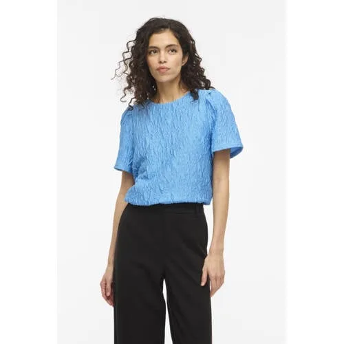 Voor een feestelijke look die ook op gewone dagen past, is deze VILA dames top een veelzijdige basis. De Visophia blouse in blauw heeft een gesloten ronde hals en korte pofmouwen, wat meteen een vrouwelijke uitstraling geeft. De subtiele jacquardstructuur in de stof zorgt voor een rustige, maar toch rijke textuur, waardoor de top net even anders oogt dan een gewone effen blouse.Blauwe top met subtiele structuur Effen blauwe kleur die gemakkelijk combineert met zowel jeans als een nette broek of rok Korte pofmouwen geven extra volume aan de schouders voor een moderne look Gesloten ronde hals zorgt voor een rustige, verzorgde bovenkant Jacquardstructuur en lichte textuur geven de stof een verfijnde uitstraling Geschikt voor een feestelijke gelegenheid, maar ook mooi voor kantoor of een etentje Vallt normaal volgens het maatadvies, kiezen van je gebruikelijke maat ligt het meest voor de hand Praktisch in onderhoud: wasbaar op 30 graden, lauw strijkbaar en drogen op lage temperatuurVan werkdag tot feestjeDeze top uit de 'Daily' collectie leent zich goed voor dagen waarop je weinig tijd hebt om na te denken over je outfit. In combinatie met een nette broek en hakken is de look feestelijk, met sneakers en een jeans voelt de blouse direct meer casual.VILA: Scandinavische inspiratie voor elke dagVILA staat bekend om vrouwelijke collecties met een moderne, toegankelijke stijl. De ontwerpen volgen de trends, maar blijven draagbaar voor alledag. Met deze top haal je een item in huis dat past bij de herkenbare VILA signatuur: zacht vrouwelijk, modisch en eenvoudig te combineren.Geschikt als je graag snel een verzorgde en feestelijke outfit samenstelt.