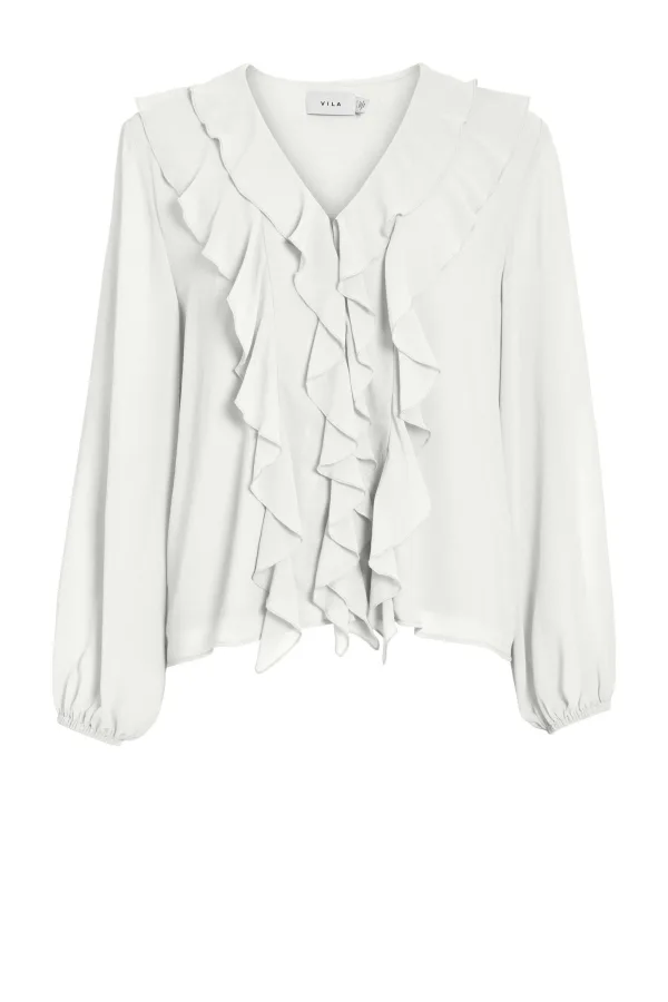 - Bij bol.com kun je VILA - VIANE L/S V-NECK FRILL TOP - NOOS - Dames - Blouses kopen voor slechts €32,34 , dat is 19% goedkoper dan bij ABOUT YOU (€39,99).