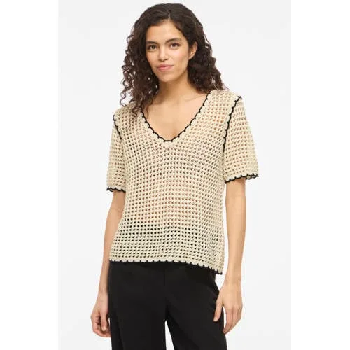 Zoek je een lichte, veelzijdige top voor elke dag, dan is deze gebreide V-hals top van VILA een praktische basis. De ecru kleur met subtiel zwart detail geeft een rustige uitstraling en het open breisel zorgt voor een luchtig effect. De V-hals en half lange, rechte mouwen maken de top ideaal voor warme dagen of om te combineren met een vest of blazer.Luchtig breisel voor dagelijks gemak Open breisel voor een luchtig gevoel op warme dagen V-hals die mooi aansluit bij zowel een jeans als een rok Half lange, rechte mouwen voor een nette, maar ontspannen look Effen ontwerp in ecru/zwart, makkelijk te combineren met je garderobe Gemaakt van 60% katoen en een soepele vezel voor comfortabel draaggevoel Onderdeel van de 'Daily' collectie, geschikt voor alledaagse momenten Maatadvies: dit artikel valt normaalPraktisch in onderhoudDe top is wasbaar op 30 graden, kan lauw gestreken worden en is niet geschikt voor de droogtrommel. Zo houd je het breisel en de pasvorm mooi, keer op keer.VILA: moderne mode voor elke dagVILA staat bekend om vrouwelijke, toegankelijke mode met een moderne uitstraling. De collecties sluiten aan op het dagelijks leven, met items die makkelijk combineren en prettig dragen. Deze knit top past precies in die gedachte: stijlvol in zijn eenvoud en heel geschikt voor alledaags gebruik.Een lichte knit die je het hele seizoen door zo uit de kast pakt.