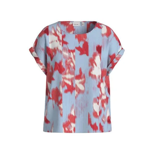 Breng kleur in je dagelijkse outfits met deze lichtblauwe dames top van viscose van VILA. De top heeft een all over print in lichtblauw en rood, wat meteen een frisse en eigentijdse uitstraling geeft. De soepele stof valt mooi rond je lichaam en voelt zacht aan op de huid, ideaal voor lentedagen en milde zomermomenten.Frisse top met speelse details Gemaakt van 100% viscose, een luchtige stof die prettig aanvoelt All over print in lichtblauw/ rood voor een levendige uitstraling Ronde hals die netjes aansluit zonder hoog te zitten Korte, rechte mouwen met omslagdetail voor een subtiel accent Geschikt als daily item, makkelijk te combineren met jeans, rok of pantalon Valt normaal volgens het maatadvies Onderhoud: handwas, niet strijken en niet drogen in de droogtrommelIdeaal voor je dagelijkse looksDeze top uit de 'Daily' collectie vormt een praktische basis voor al je alledaagse outfits. Combineer met een lichte jeans en sneakers voor een relaxte dag, of draag een nette broek en loafers voor een iets gekledere look. De luchtige viscose en korte mouwen maken de top heel geschikt voor het voorjaar.VILA: moderne mode voor elke dagVILA staat bekend om vrouwelijke, toegankelijke mode met een frisse, Scandinavische touch. De collecties combineren modieuze details met draagbare ontwerpen, zodat je eenvoudig outfits samenstelt die passen bij jouw dagelijkse leven. Met deze top kies je voor een item dat je gemakkelijk in verschillende combinaties draagt.Een lichte, soepelvallende top voor dagen waarop je comfortabel en verzorgd voor de dag wilt komen.