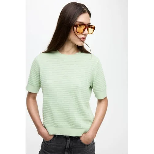 Breng een frisse, zachte kleur in je garderobe met deze VILA gebreide top in lichtgroen. De 'Vilollo O-Neck S/S Detail Knit Top' is een veelzijdig basisitem voor elke dag. Het luchtige breisel en de korte mouwen maken deze top ideaal voor het voorjaar en voor laagjes op koelere dagen. Gemaakt van 100 procent katoen voelt de stof soepel aan op de huid en biedt het comfortabele draagbaarheid, de hele dag door.Licht gebreide top voor elke dag Lichtgroene kleur die eenvoudig te combineren is met jeans, rok of pantalon Gebreide structuur voor een subtiel, vrouwelijk oppervlak Korte, rechte mouwen voor een luchtig en modern silhouet Ronde hals die mooi aansluit zonder strak aan te voelen Gemaakt van 100 procent katoen voor een zachte touch en prettig draagcomfort Effen design zonder zakken voor een rustige, cleane look Valt volgens maatadvies normaal, waardoor je gewoon je gebruikelijke maat kunt kiezen Praktisch in onderhoud, wasbaar op 40 graden en lauw strijkbaarMakkelijk te stylen knit voor kantoor en casualDeze lichtgroene top past net zo goed bij een jeans en sneakers als bij een nette broek en loafers. Draag hem los over een rechte broek of half in je tailleband voor een iets meer geklede uitstraling. Het gebreide materiaal geeft direct een verzorgde look, zonder dat je hoeft in te leveren op gemak.VILA, modieuze basics met een moderne twistVILA staat bekend om vrouwelijke kleding met een heldere, moderne uitstraling. De collecties sluiten aan op de trends van het seizoen, maar blijven toch draagbaar voor alledaagse momenten. Met deze gebreide top haal je een betrouwbaar item in huis dat stijl, comfort en eenvoudige verzorging combineert.Een lichte, gebreide favoriet waar je het hele seizoen plezier van hebt.