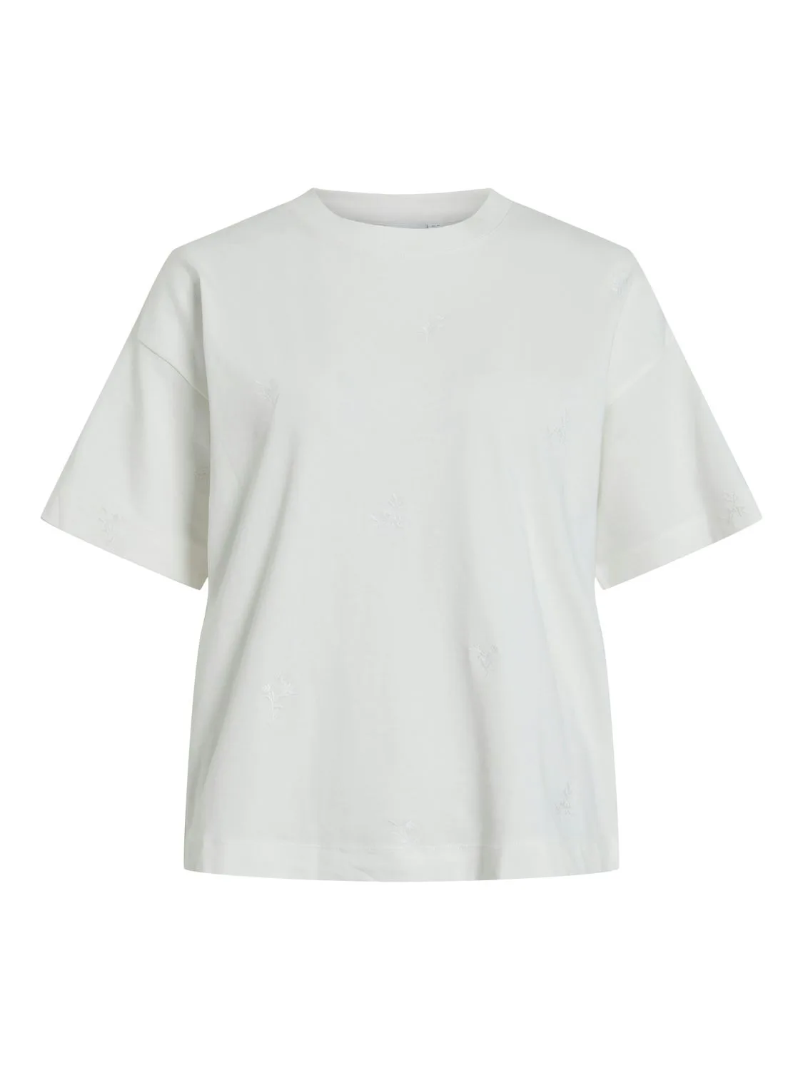 T-shirt van VILA voor dames;Puur katoen;Los model;Model 'MONIE';Geribde ronde hals;Ruglengte bij maat S: 59 cm