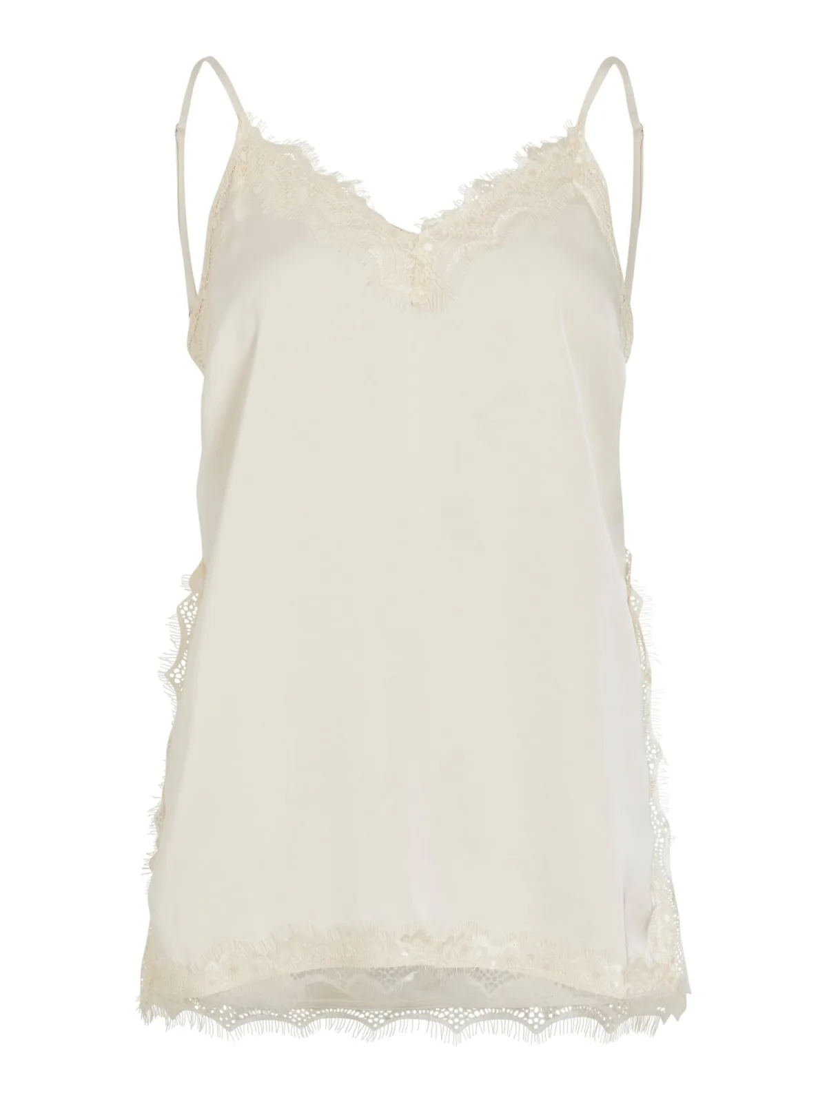 Design: Gefranjerde zoom, Zoom/rand met boord, Zijdelingse inkepingen, Diepe snit/decolleté; Halstype: V-hals; Motief: Effen; Soort bandjes: Spaghettibandjes; Details: Kant; Extra's: Verstelbare bandjes, Voelt zacht aan; Pasvorm: Normale pasvorm; Armlengte: Mouwloos; Lengte: Normale lengte