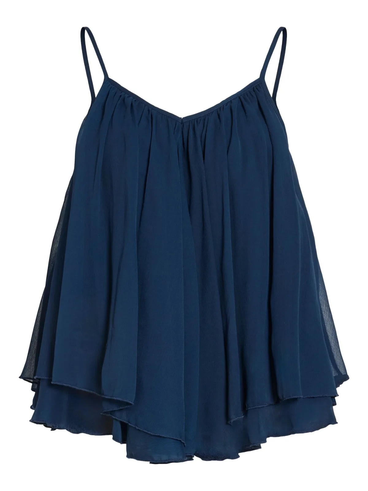 Design: Ingelegde kraag; Materiaal: Gerecycled materiaal; Halstype: V-hals; Motief: Effen; Soort bandjes: Spaghettibandjes; Details: Volant, Gedrapeerd; Extra's: Gladde stof; Pasvorm: Losse pasvorm; Armlengte: Mouwloos; Lengte: Normale lengte