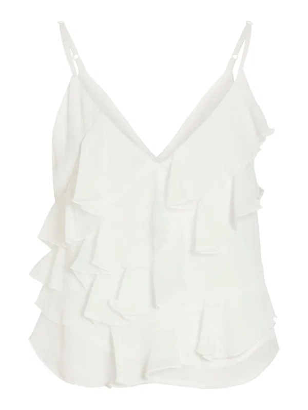 Design: Gevoerde zoom/rand; Materiaal: Gerecycled materiaal; Halstype: V-hals; Motief: Effen; Soort bandjes: Spaghettibandjes; Details: Volant; Extra's: Op staal naden; Pasvorm: Normale pasvorm; Armlengte: Mouwloos; Lengte: Normale lengte