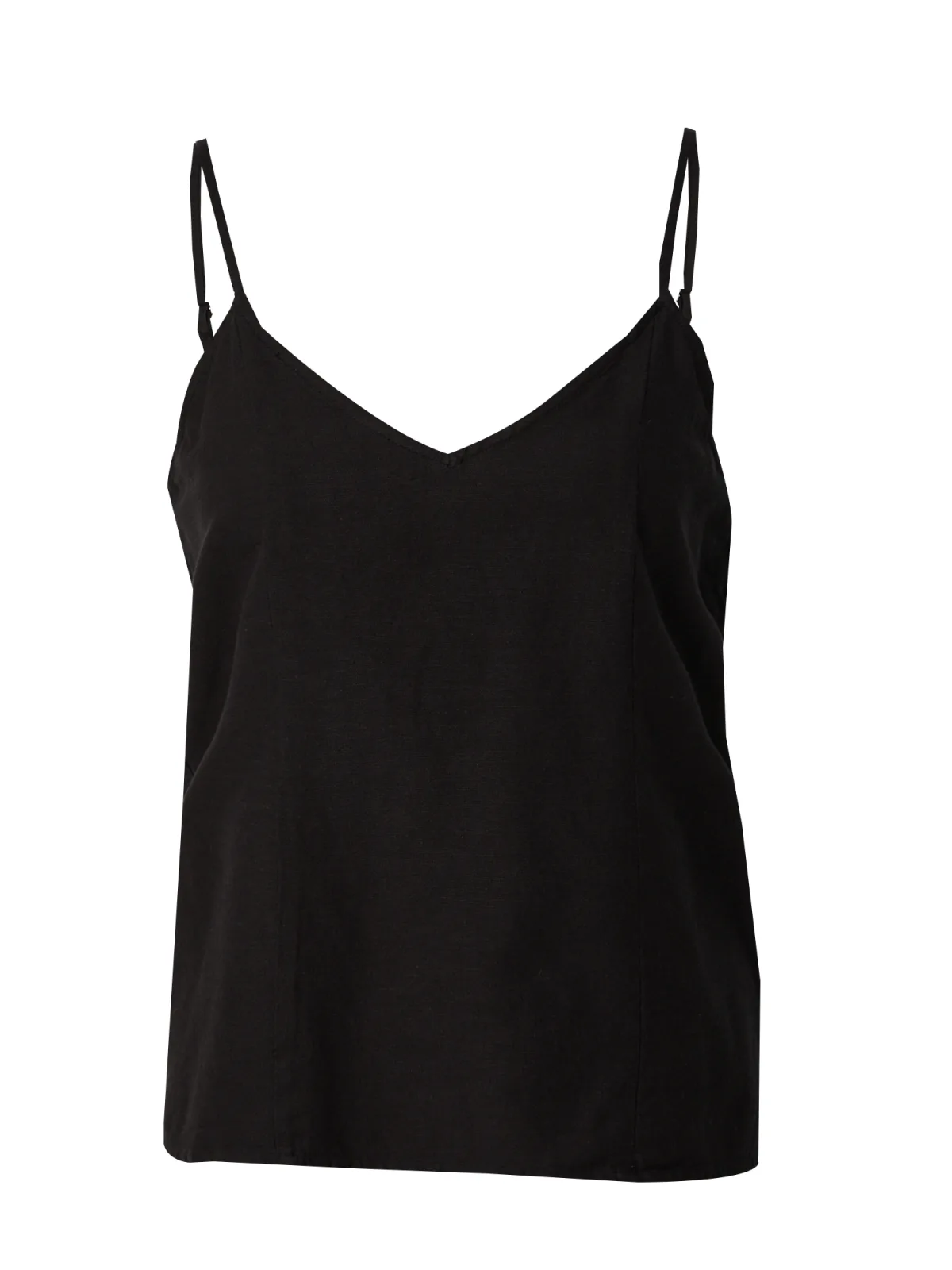 Design: Recht model, Diepe snit/decolleté; Materiaal: Viscose; Halstype: V-hals; Motief: Effen; Soort bandjes: Spaghettibandjes; Extra's: Verstelbare bandjes, Lichte stof; Pasvorm: Normale pasvorm; Armlengte: Mouwloos; Lengte: Normale lengte