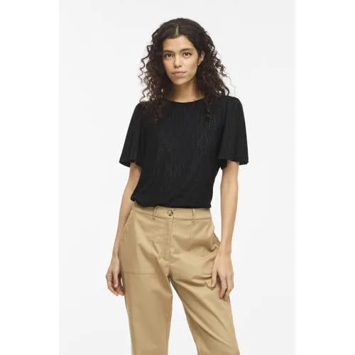 Voor een nette, maar toch relaxte look is deze VILA blouse met gesloten hals een veelzijdige basis in je garderobe. De zwarte 'Vibelli O-Neck S/S Top' heeft een ronde hals en korte, rechte mouwen, waardoor hij makkelijk combineert met je favoriete jeans, pantalon of rok. De soepele stof met lichte stretch sluit goed aan op je lichaam en volgt je bewegingen door de dag heen.Zwarte top voor elke dag Effen zwarte kleur, goed te combineren met allerlei stijlen en prints Ronde hals en korte mouwen voor een tijdloze, rustige uitstraling Soepele stof met stretch voor een comfortabele fit Rechte mouwen en geen zakken voor een strak en clean silhouet Geschikt als dagelijkse top in de lente en het hele jaar door met een vest of blazer Maatadvies: valt normaal, je kunt je gebruikelijke maat kiezen Praktisch in onderhoud: wasbaar op 30 graden, lauw strijkbaar en drogen op lage temperatuurMakkelijk combineren, van werk tot weekendVoor een werkdag komt deze zwarte top goed uit onder een blazer met een nette broek. In het weekend draag je hem juist luchtig op een mom jeans of shorts met sneakers. De rustige halslijn maakt hem ook geschikt om te combineren met je favoriete ketting.Scandinavische stijl van VILAVILA ontwerpt vrouwelijke, moderne kleding met een toegankelijke uitstraling. Het merk combineert zachte lijnen met draagbare ontwerpen die je zowel doordeweeks als in je vrije tijd aantrekt. Met deze top kies je voor een basisitem dat past binnen een garderobe vol heldere, Scandinavische eenvoud.Een comfortabele, zwarte basis die je keer op keer uit de kast haalt.
