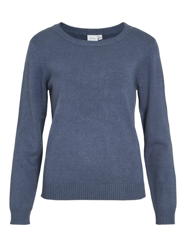 Gebreide damespullover van Vila;Viscosemix;Los model;Ribboorden;Ronde hals;Ruglengte bij maat S: 61 cm;Mouwlengte bij maat S: 65 cm