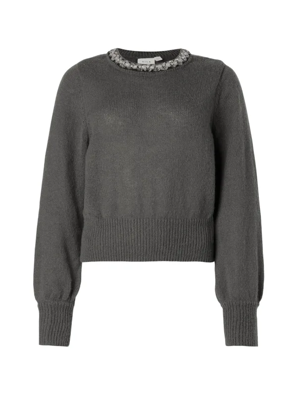 VILA Trui ‘VIALICE’ donkergrijs