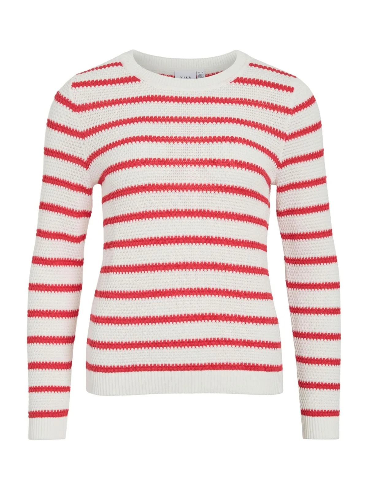 VILA Trui ‘VIDALO’ rood / wit gemêleerd