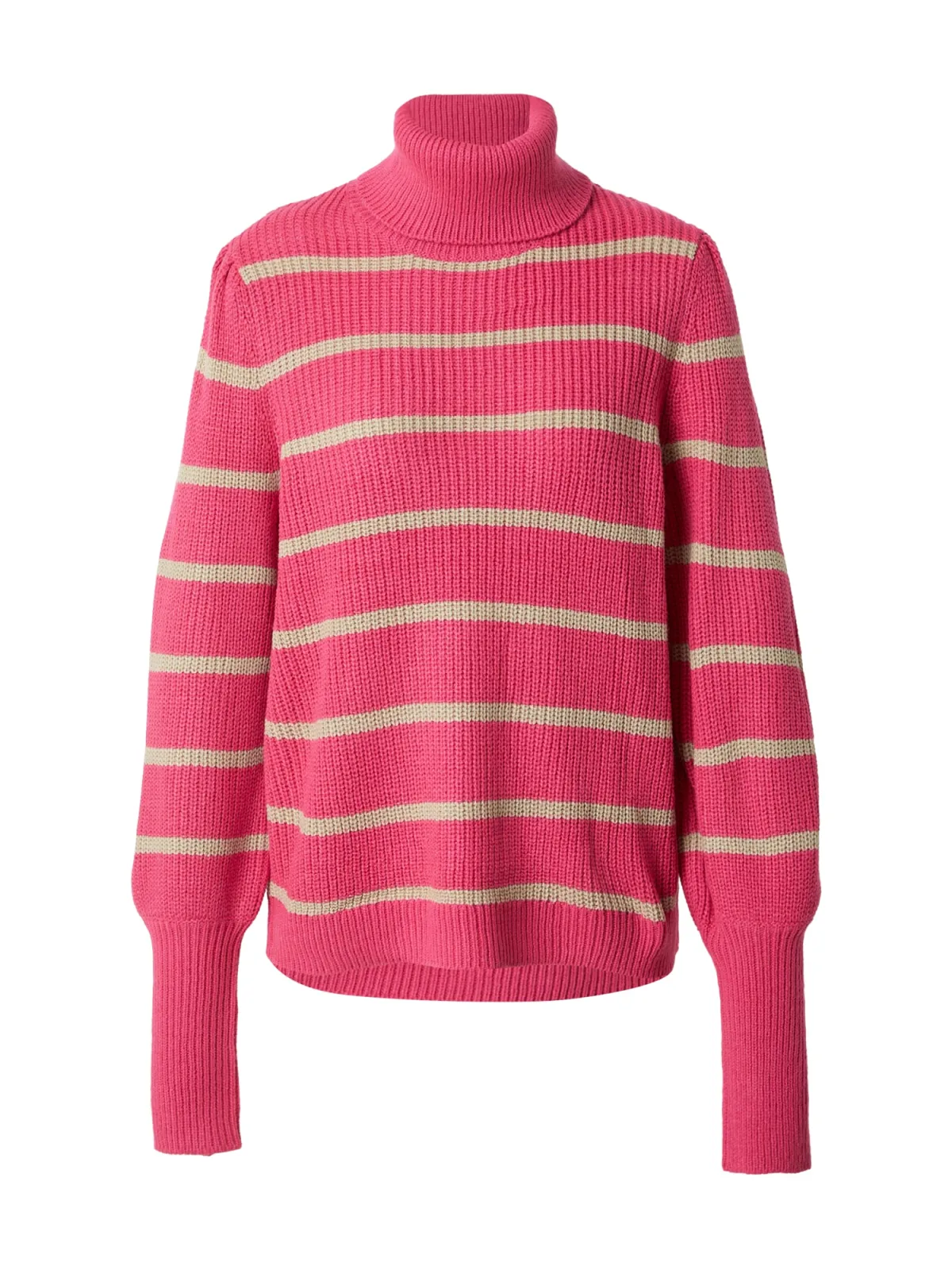 Design: Pofmouwen, Geribd ceintuurtje; Materiaal: Knitwear; Halstype: Col; Motief: Gestreept; Details: Gedrapeerd; Extra's: All-over patroon, Fully fashioned; Pasvorm: Normale pasvorm; Armlengte: Lange mouw; Lengte: Normale lengte