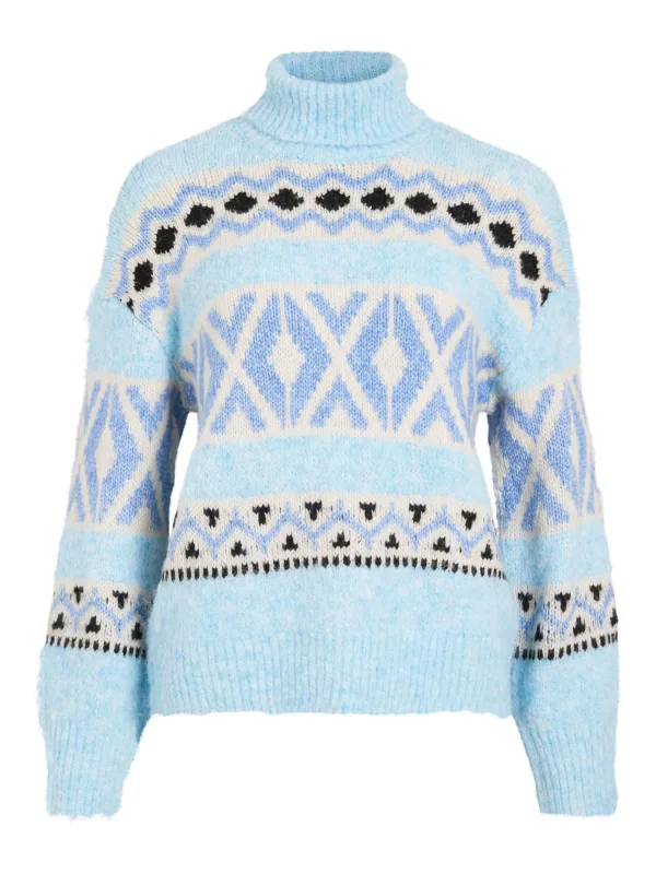 VILA Trui ‘VILaena’ blauw / lichtblauw / zwart / wit