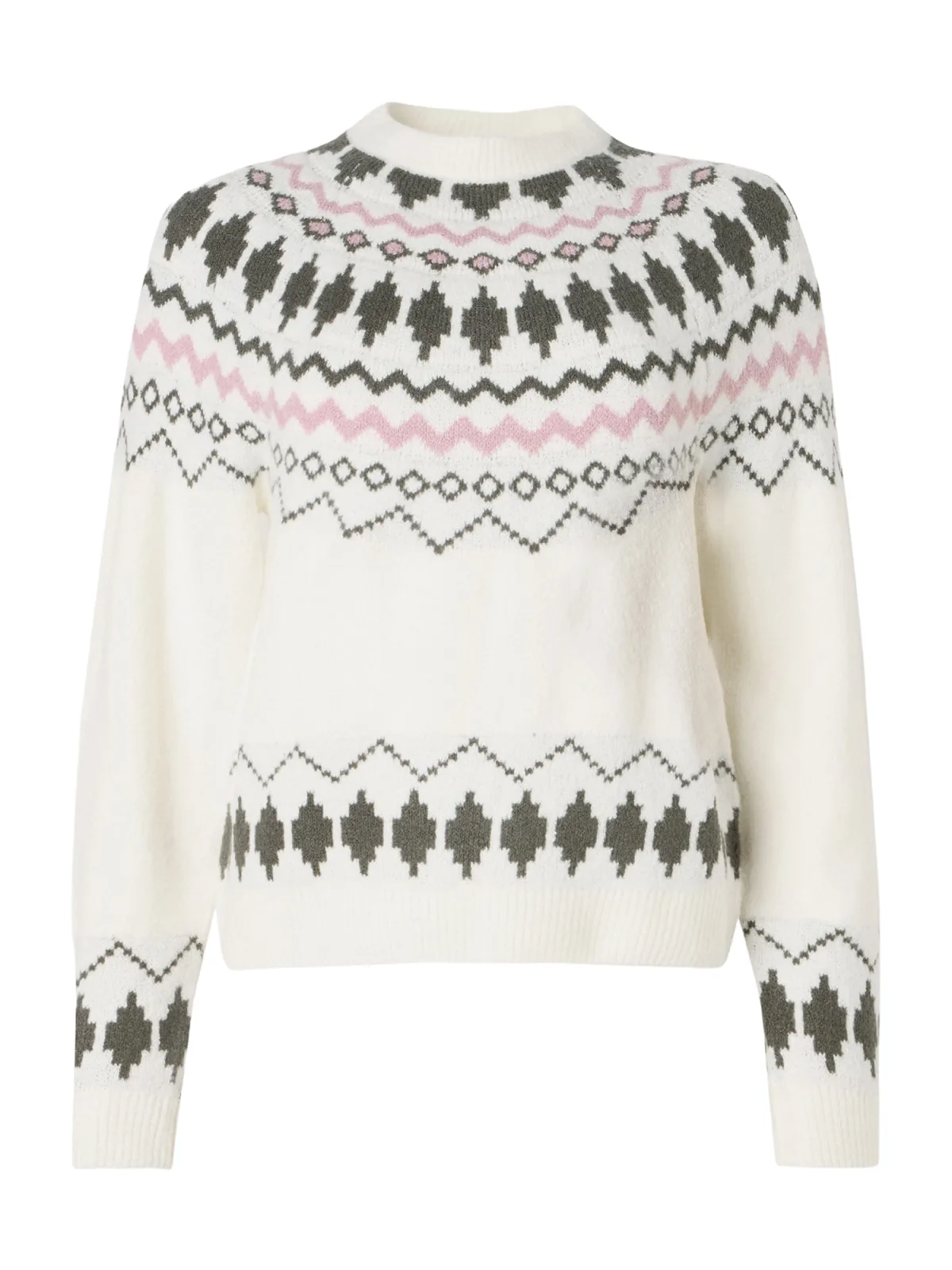 VILA Trui ‘VIPEYSA’ olijfgroen / rosa / wit Prijzen
