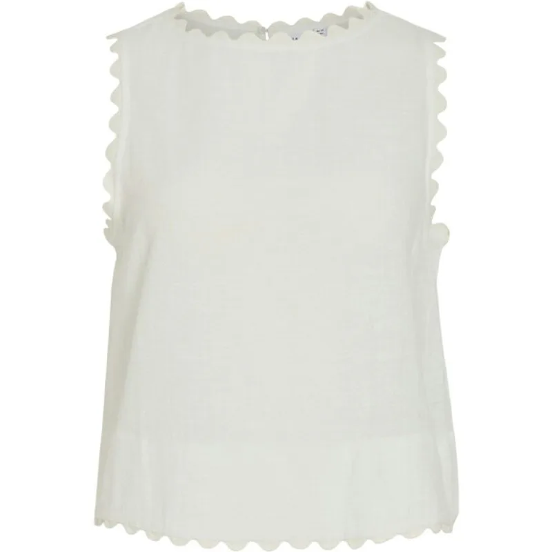 Vila vimindy o-neck s/l scallop top 14115187 snow white